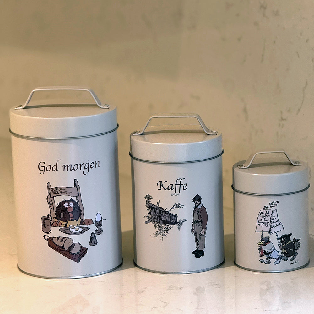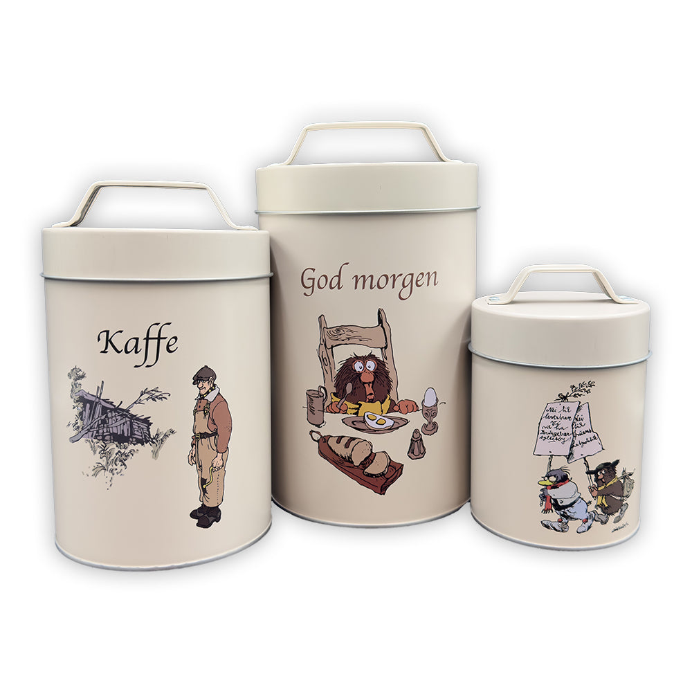 Få en herlig start på dagen med disse flotte Flåklypa oppbevaringsbokser i tinn. De kommer flotte farger – lekre sammen eller hver for seg. Her kommer ingen unna en god start på dagen. Flåklypa bokser sett a 3 med motiv av Ludvig, Solan og Reodor. Håndvask og grundig tørking anbefales. |